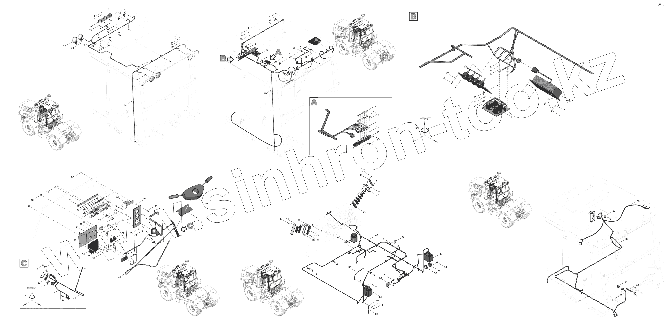 Каталог запасных частей к технике: ПТЗ К-744Р2 "Стандарт". 744Р2-3799000 Электрооборудование кабины