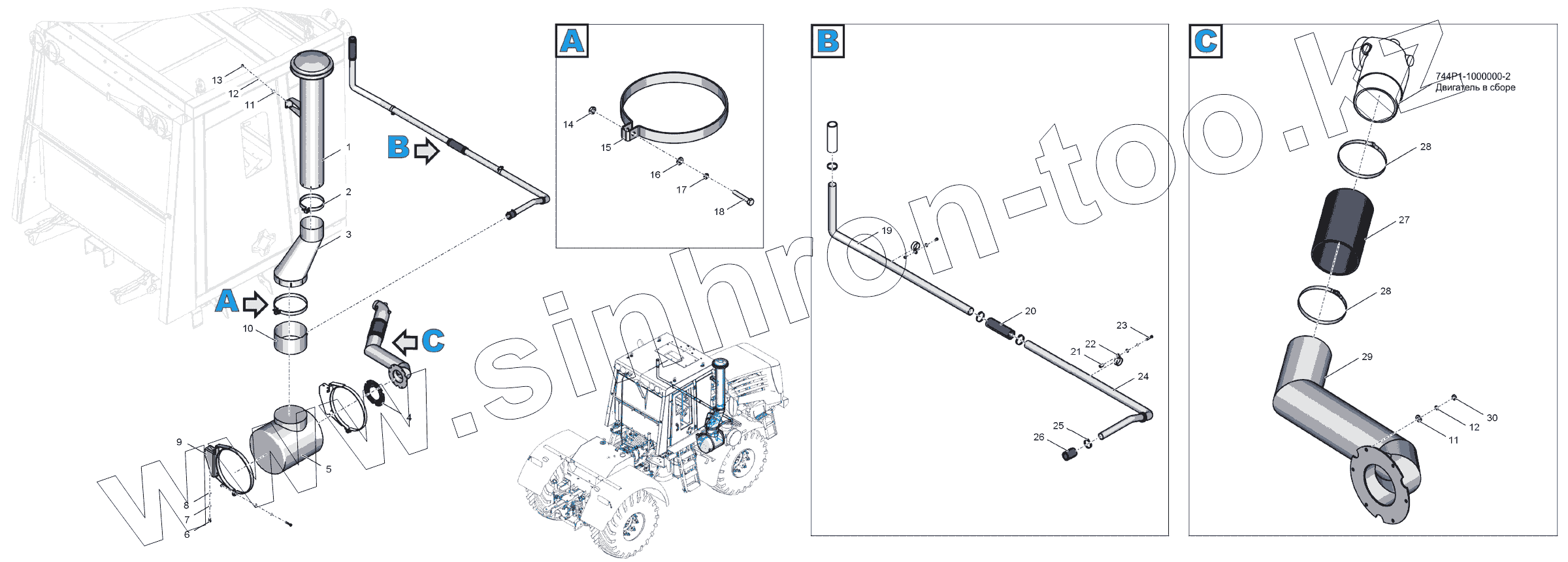 Каталог запасных частей к технике: ПТЗ К-744Р2 "Стандарт". 744Р3-1900000-2 Система очистки воздуха