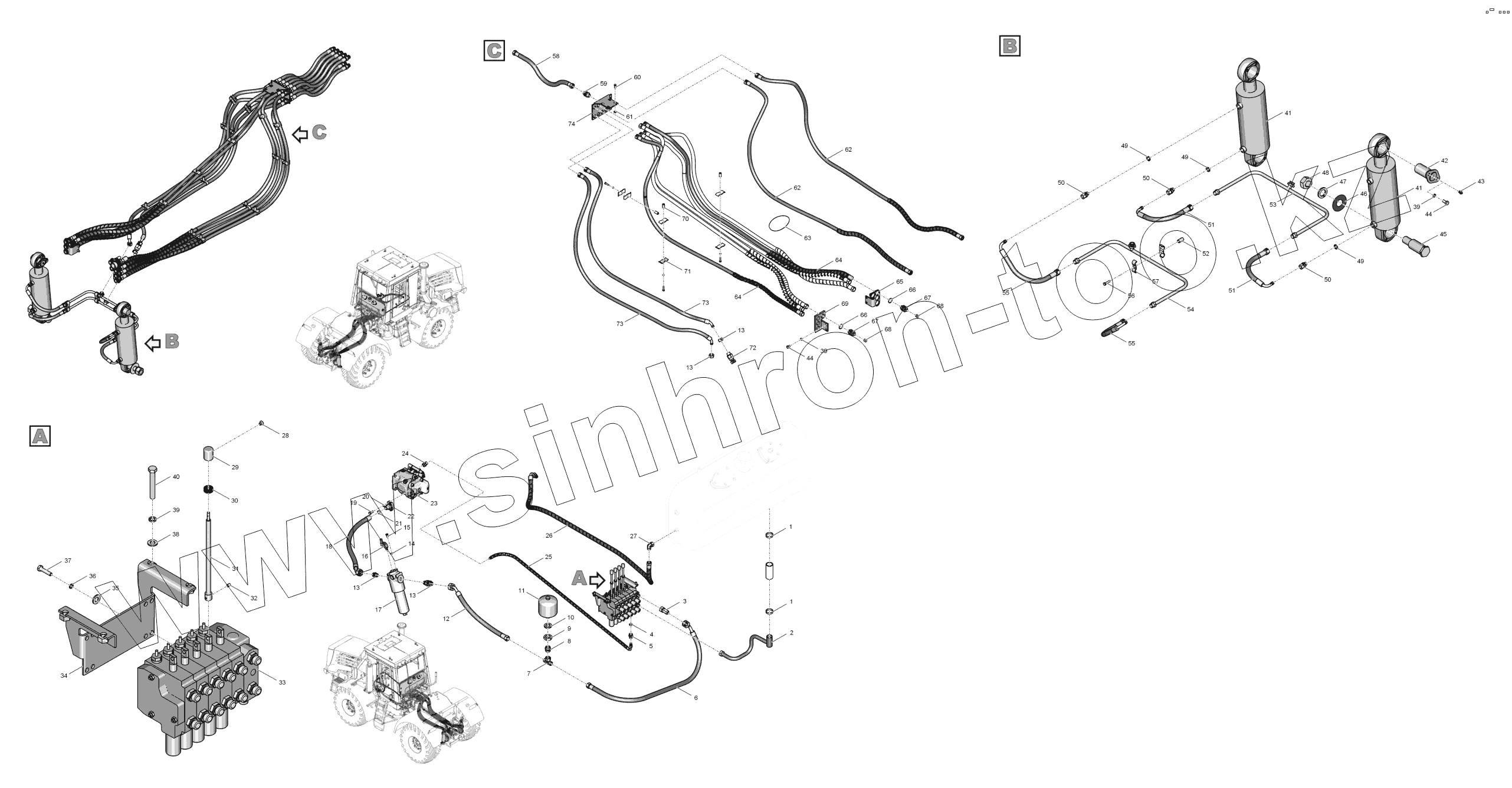 Каталог запасных частей к технике: ПТЗ К-744Р2 "Стандарт". 744Р3-4600000 Система навесного оборудования
