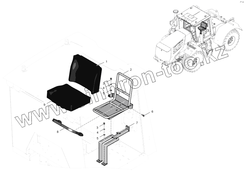 Каталог запасных частей к технике: ПТЗ К-744Р2 "Стандарт". 744Р-6810000 Сиденье дополнительное