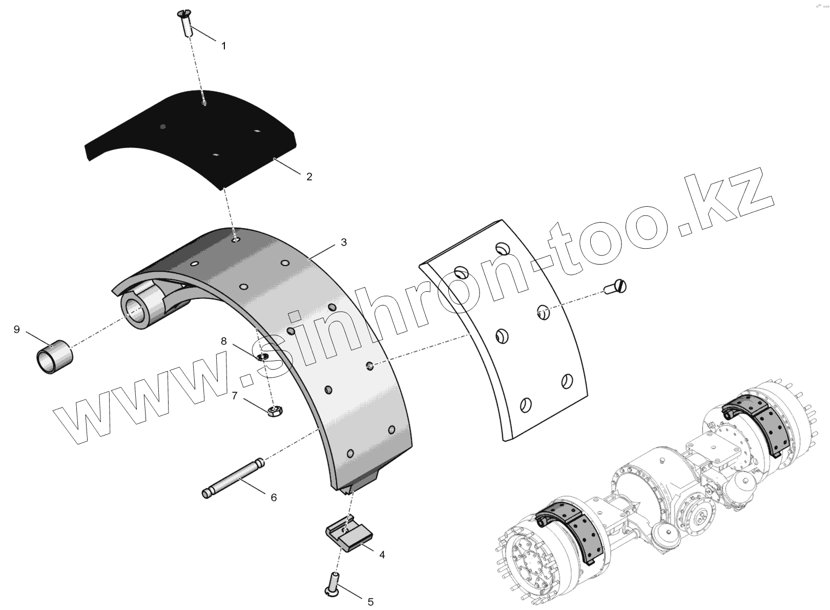 Каталог запасных частей к технике: ПТЗ К-744Р3 "Премиум". 2765020-2300060 Колодка тормоза верхняя