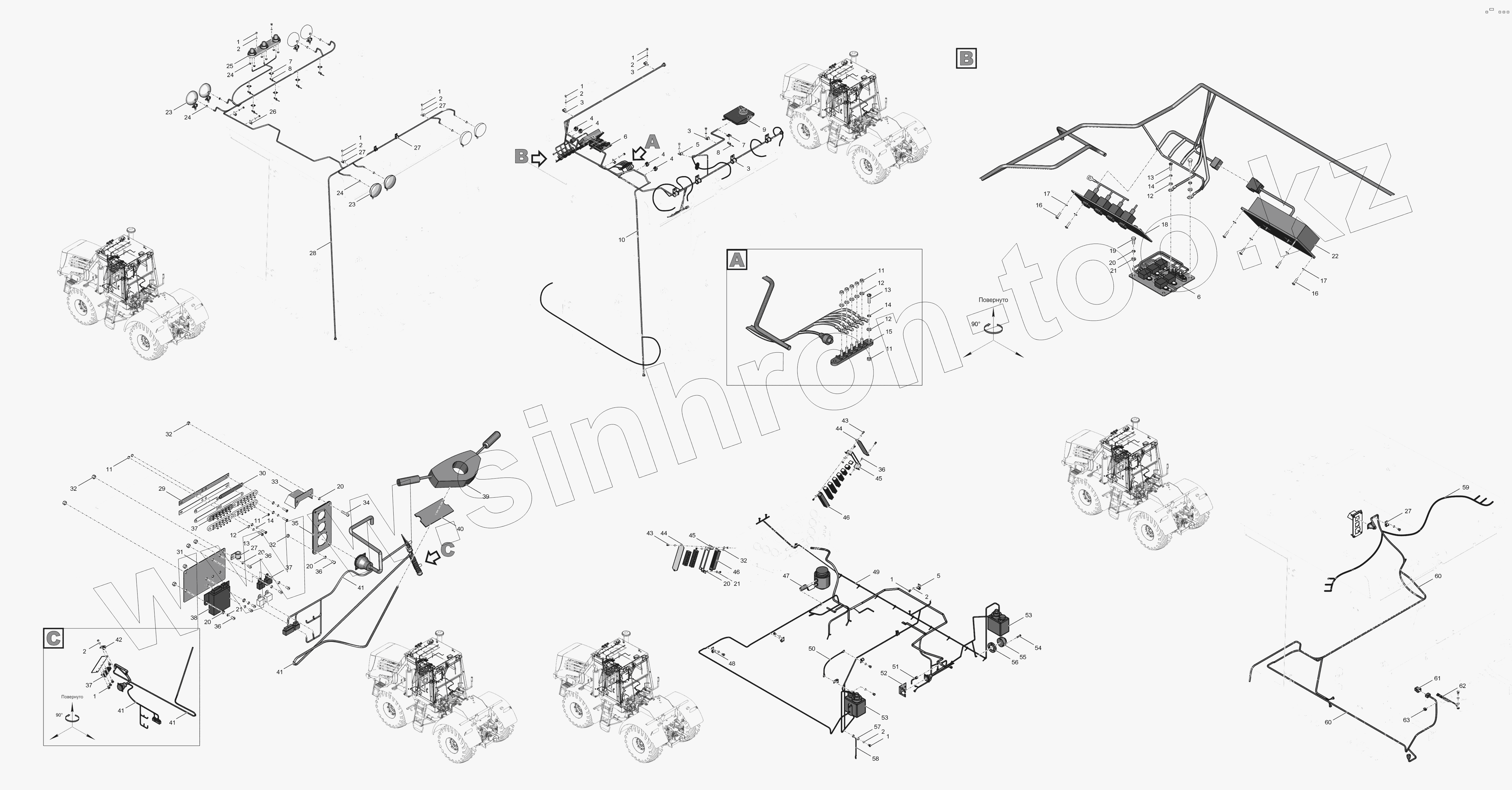 Каталог запасных частей к технике: ПТЗ К-744Р3 "Премиум". 744Р2-3799000-2 Электрооборудование кабины