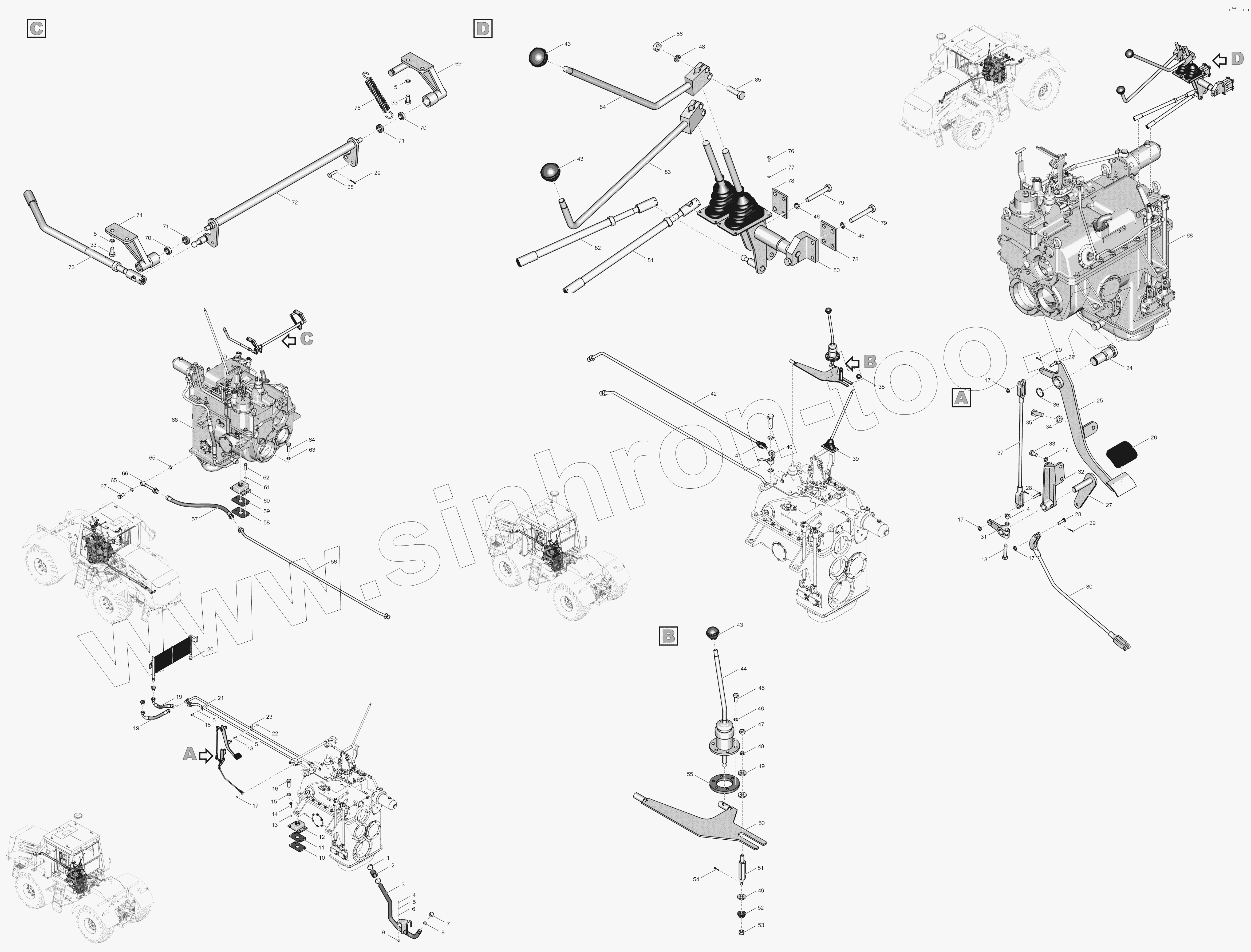 Каталог запасных частей к технике: ПТЗ К-744Р3 "Премиум". 744Р3-0017000 Установка коробки передач