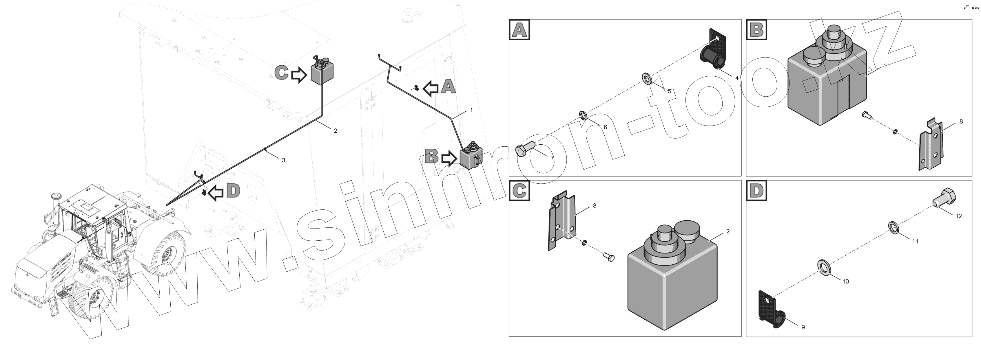 Каталог запасных частей к технике: ПТЗ К-744Р3 "Премиум". 744Р-5208000-2 Установка омывателей стекол кабины