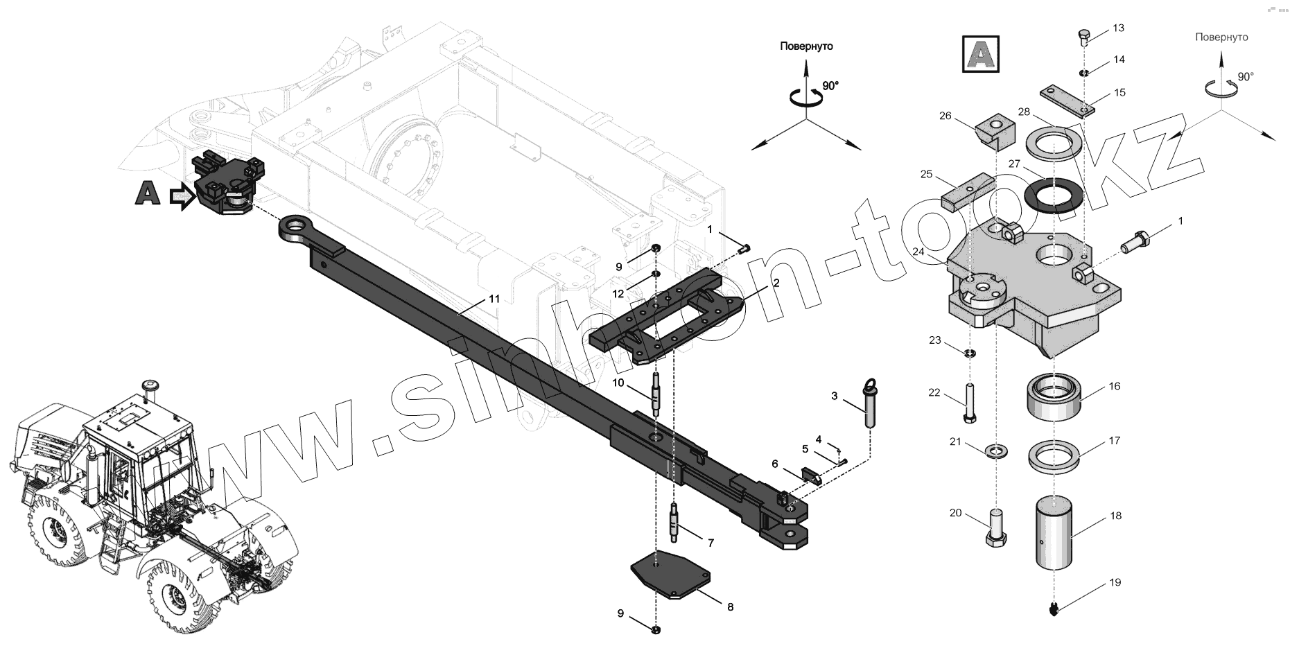Каталог запасных частей к технике: ПТЗ К-744Р3 "Стандарт". 744Р1-4642000 Маятниковое прицепное устройство