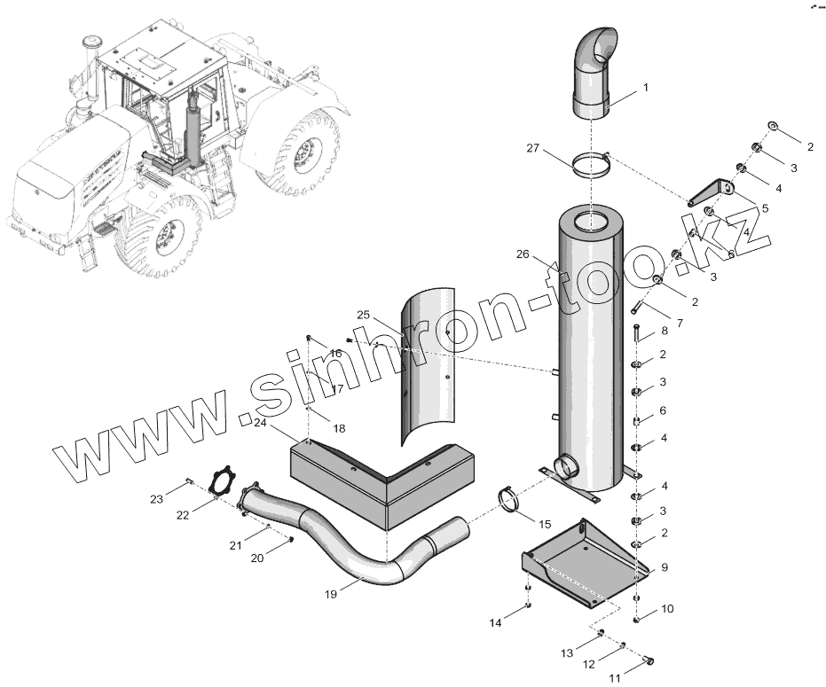 Каталог запасных частей к технике: ПТЗ К-744Р3 "Стандарт". 744Р3-1200000-2 Система выпуска отработавших газов