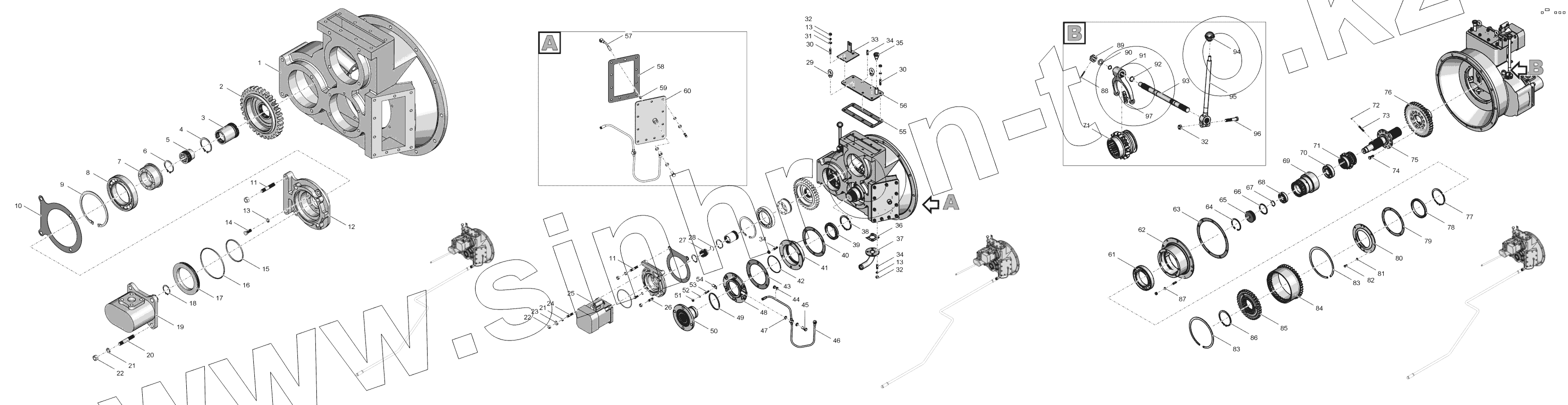 Каталог запасных частей к технике: ПТЗ К-744Р3 "Стандарт". 744Р3-162000-01 Редуктор привода насосoв