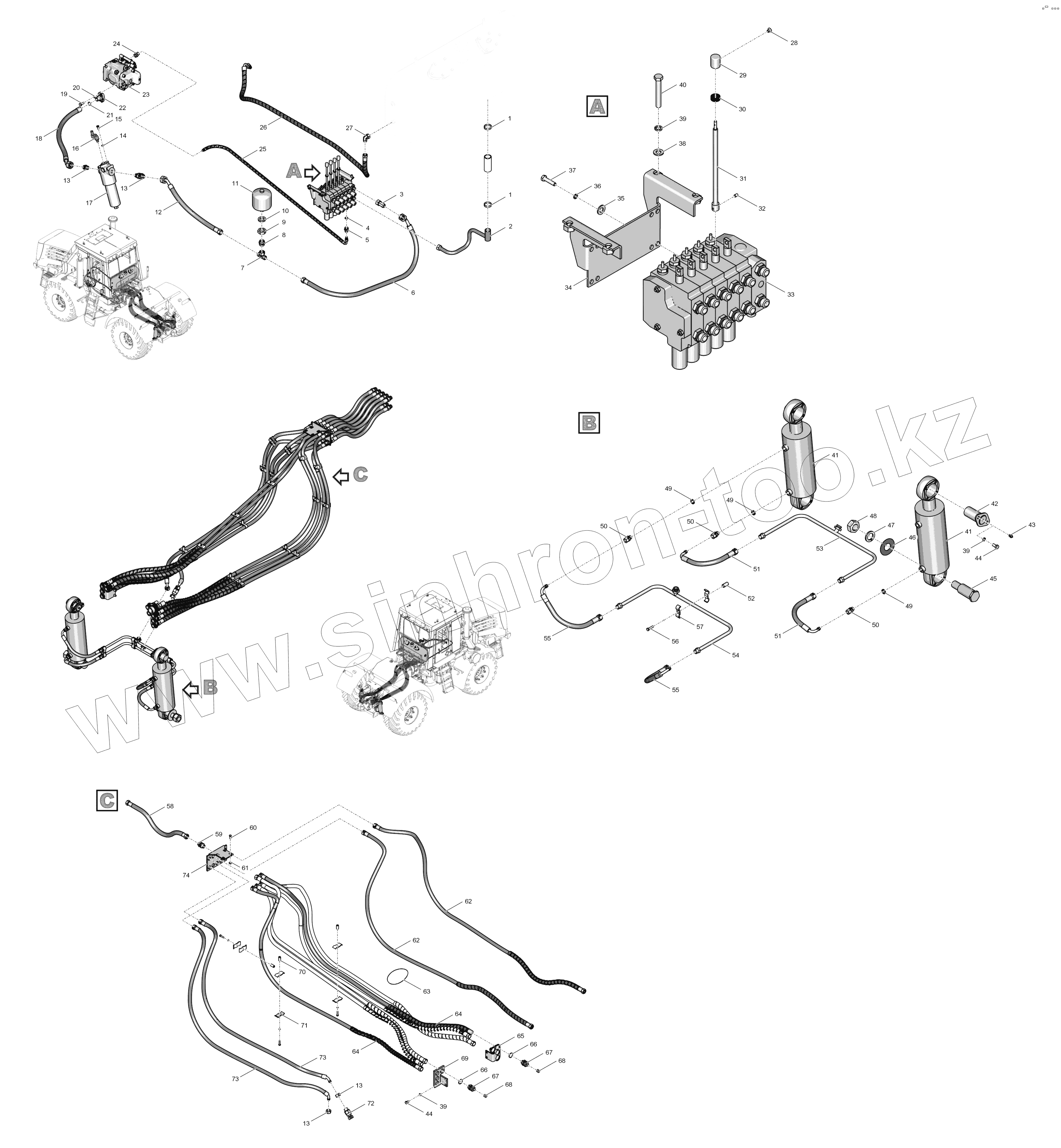 Каталог запасных частей к технике: ПТЗ К-744Р3 "Стандарт". 744Р3-4600000 Система навесного оборудования