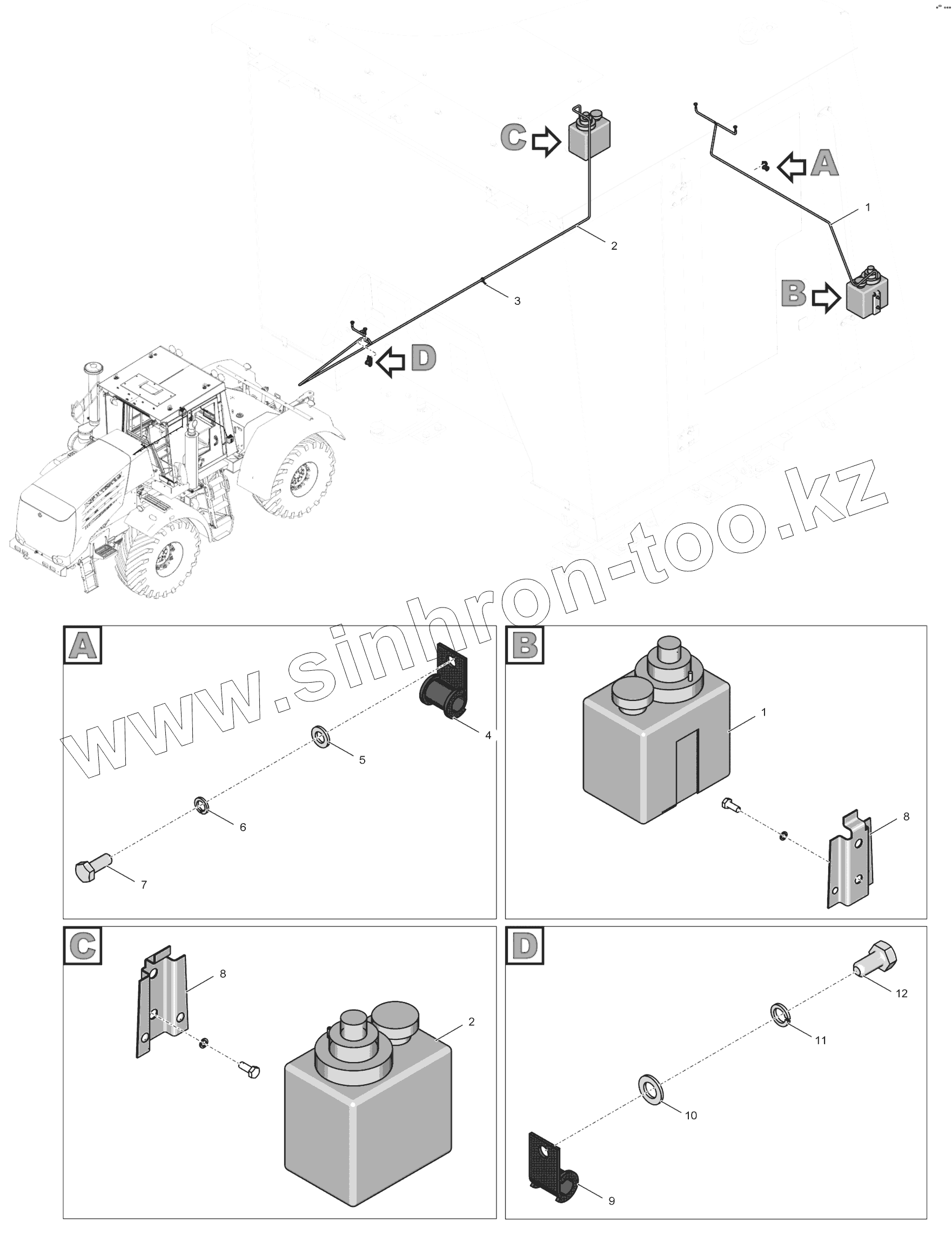 Каталог запасных частей к технике: ПТЗ К-744Р3 "Стандарт". 744Р-5208000-2 Установка омывателей стекол кабины