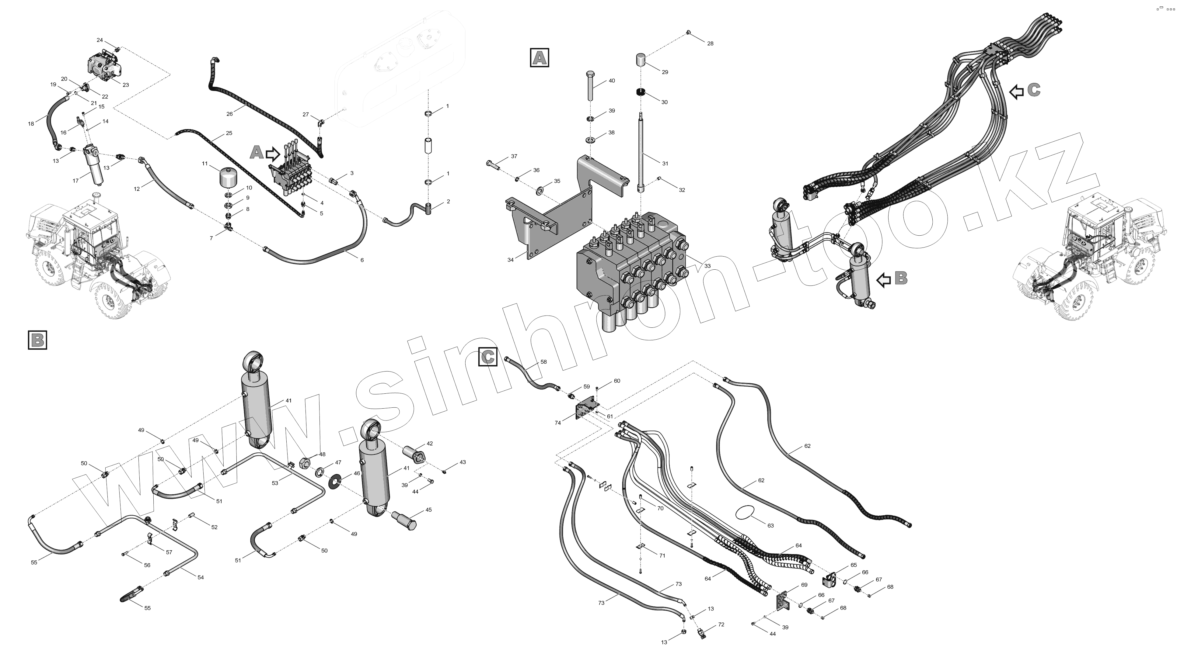 Каталог запасных частей к технике: ПТЗ К-744Р4 "Премиум". 744Р3-4600000 Система навесного оборудования