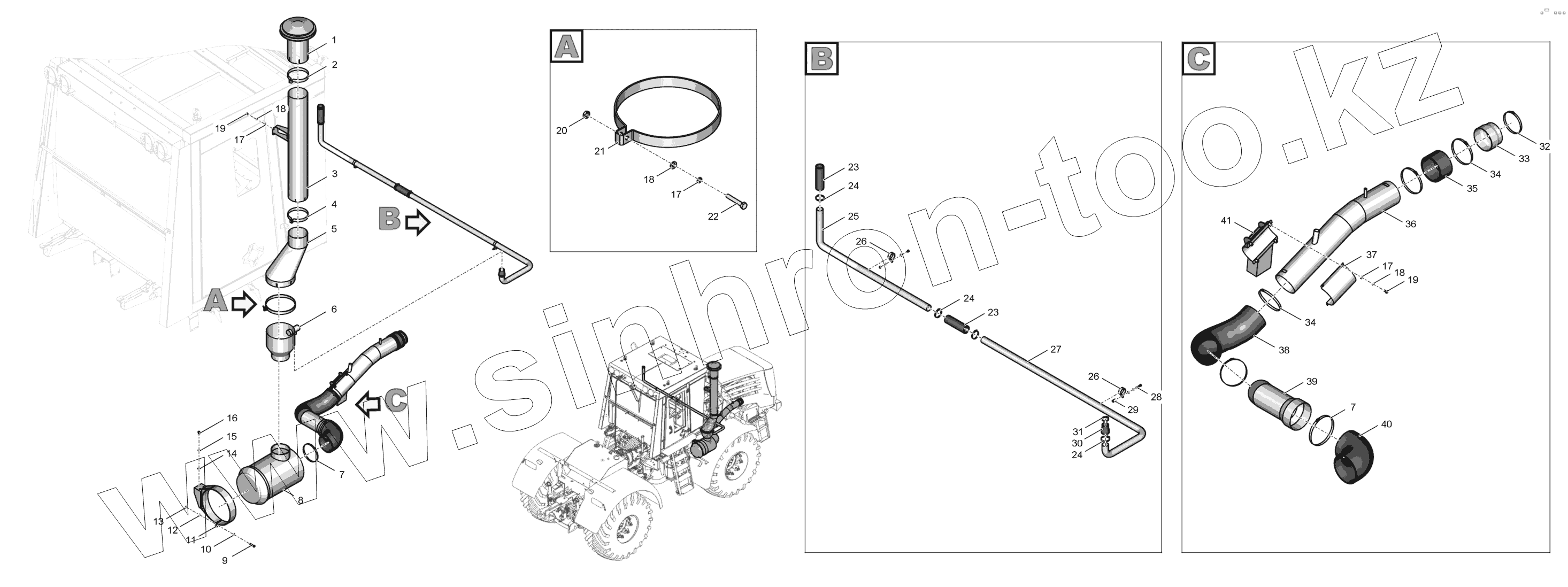 Каталог запасных частей к технике: ПТЗ К-744Р4 "Премиум". 744Р3М-1900000-1 Система очистки воздуха