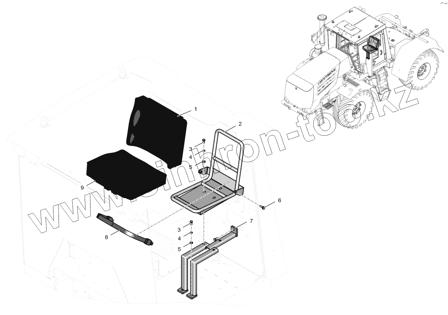 Каталог запасных частей к технике: ПТЗ К-744Р4 "Премиум". 744Р-6810000 Сиденье дополнительное
