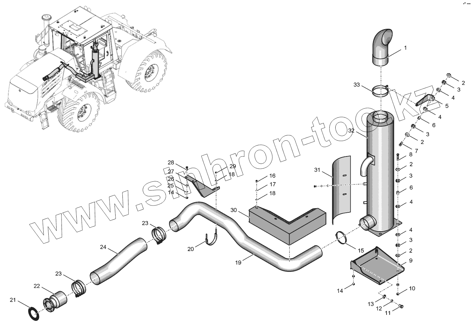 Каталог запасных частей к технике: ПТЗ К-744Р4 "Премиум". Э744Р3М-1200000-2 Система выпуска отработавших газов