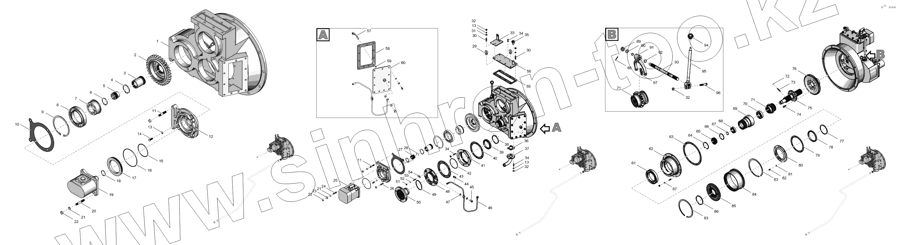 Каталог запасных частей к технике: ПТЗ К-744Р4 "Стандарт". 744Р3-162000-01 Редуктор привода насосoв