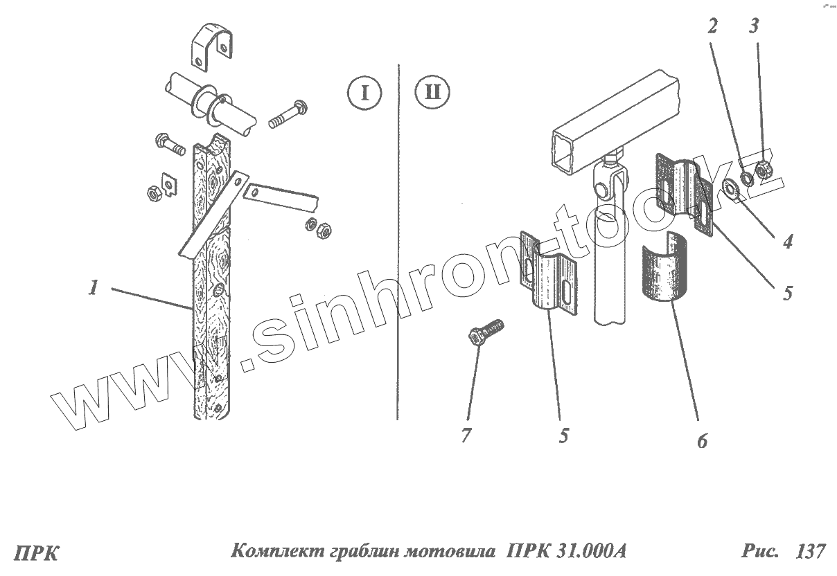 Каталог запасных частей к технике: РСМ CK-5М-1 «Нива». Комплект граблин мотовила ПРК 31.000А