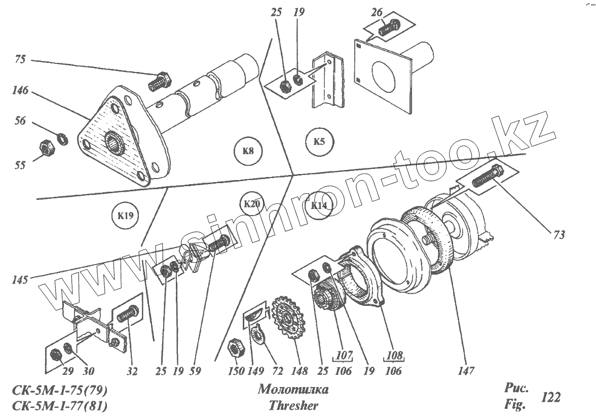 Каталог запасных частей к технике: РСМ CK-5М-1 «Нива». Молотилка 54-2Б