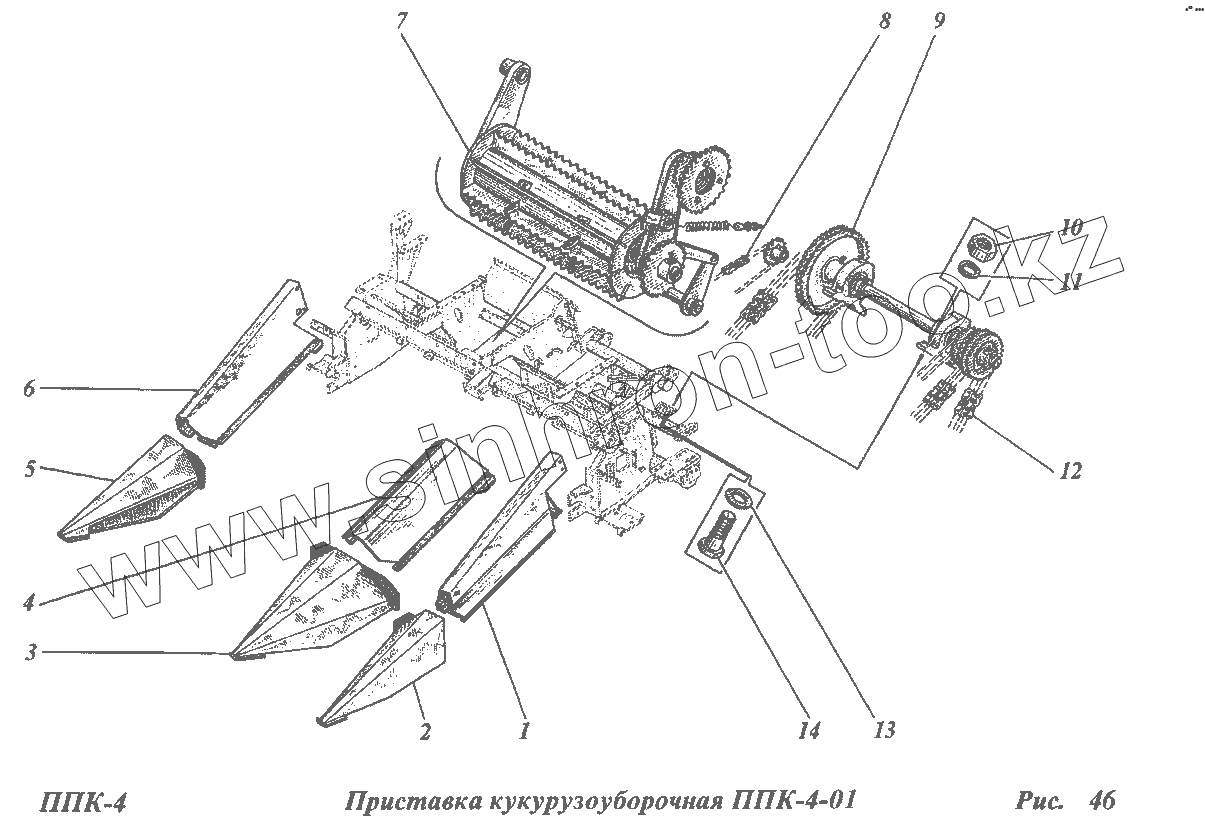 Каталог запасных частей к технике: РСМ CK-5М-1 «Нива». Приставка кукурузоуборочная ППК-4-01