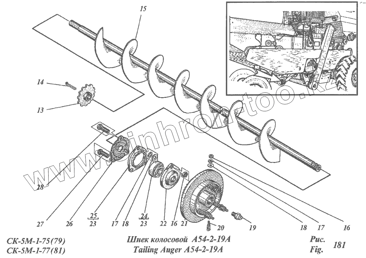 Каталог запасных частей к технике: РСМ CK-5М-1 «Нива». Шнек колосовой А54-2-19А