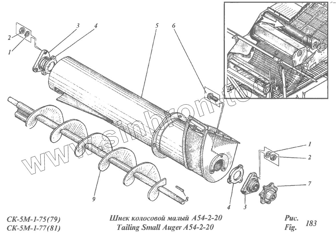 Каталог запасных частей к технике: РСМ CK-5М-1 «Нива». Шнек колосовой малый А54-2-20