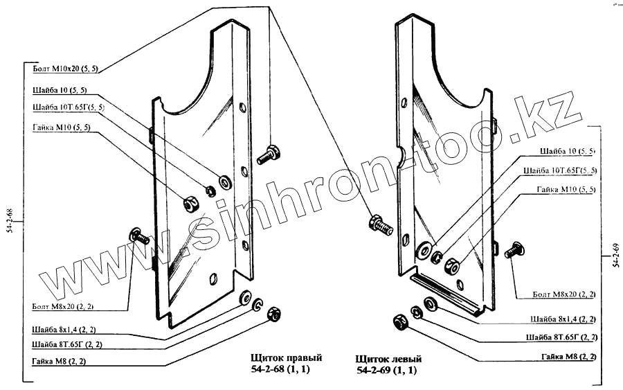 Каталог запасных частей к технике: РСМ CK-5М-1 «Нива». Щиток правый, щиток левый