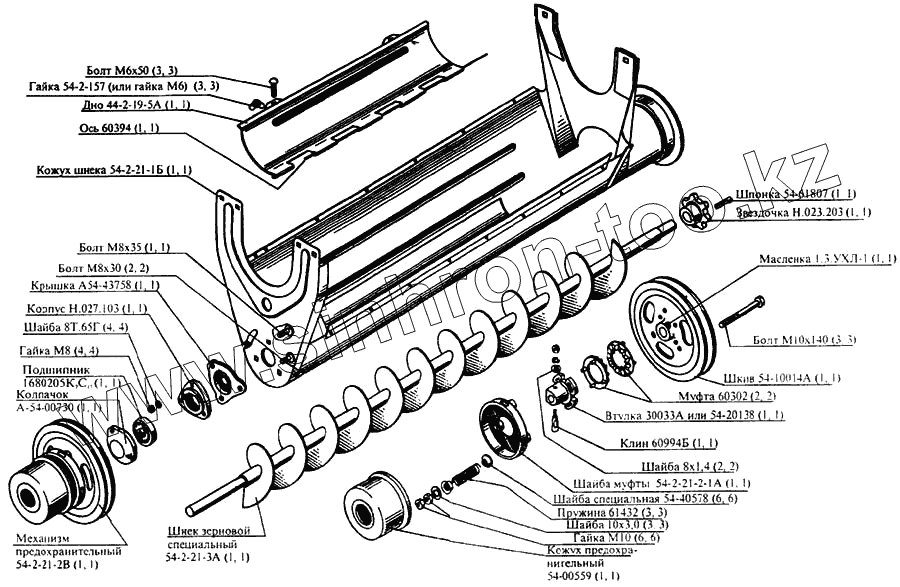Каталог запасных частей к технике: РСМ CK-5М-1 «Нива». Шнек зерновой
