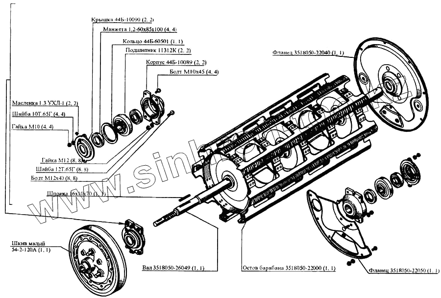 Каталог запасных частей к технике: РСМ CK-5М-1 «Нива». Установка молотильного барабана