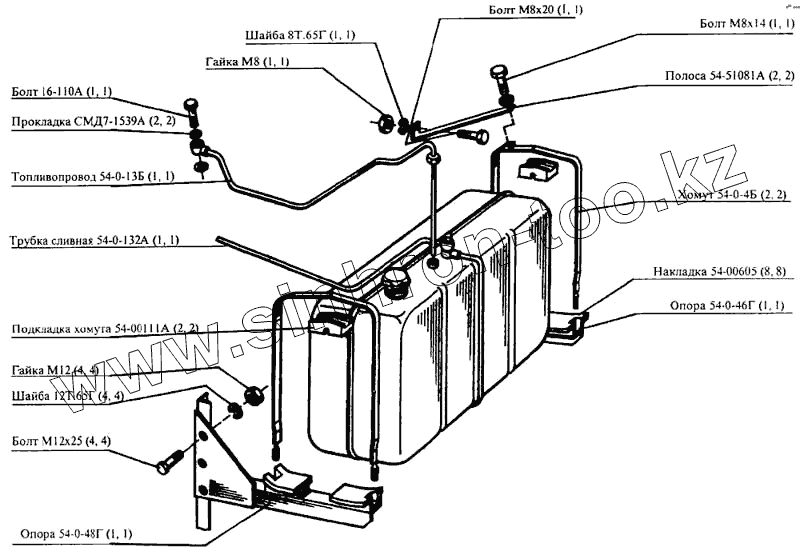 Каталог запасных частей к технике: РСМ CK-5М-1 «Нива». Установка топливного бака и топливопровода