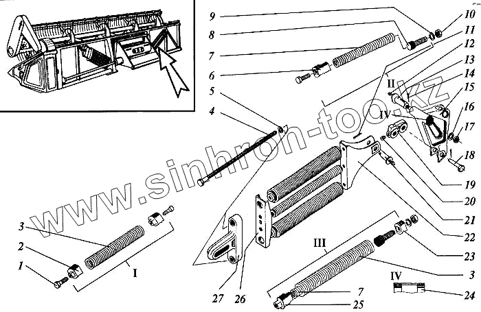 Каталог запасных частей к технике: РСМ Дон 1200. Механизм уравновешивания жатки правый
