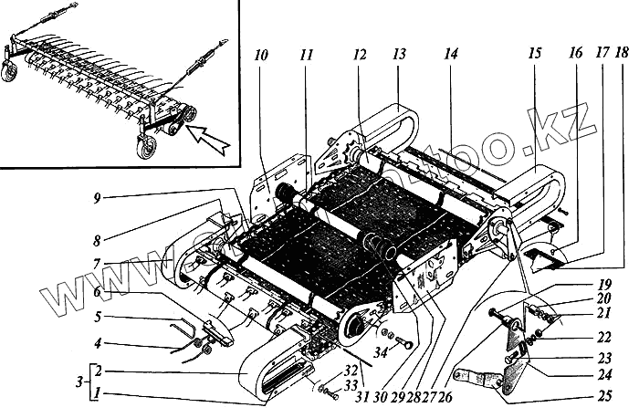 Каталог запасных частей к технике: РСМ Дон 1200. Транспортер подборщика захватом 2,75 м