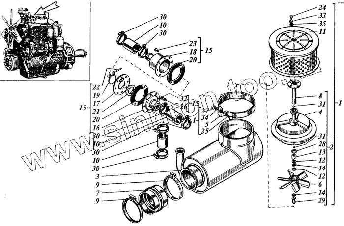 Каталог запасных частей к технике: РСМ Дон 1200. Воздухозаборник и клапан эжектора