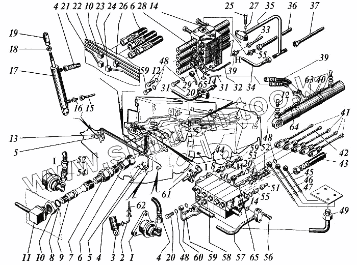 Каталог запасных частей к технике: РСМ Дон 1200Б. Гидрооборудование комбайна с установкой двигателя ЯМЗ-238АК