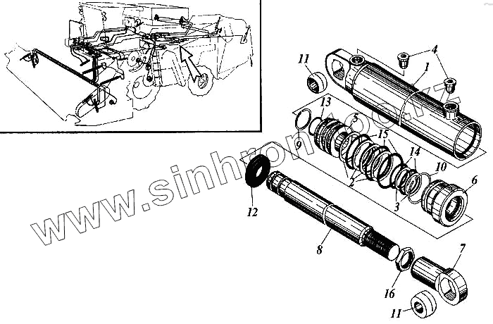 Каталог запасных частей к технике: РСМ Дон 1200Б. Гидроцилиндр поворота выгрузного шнека