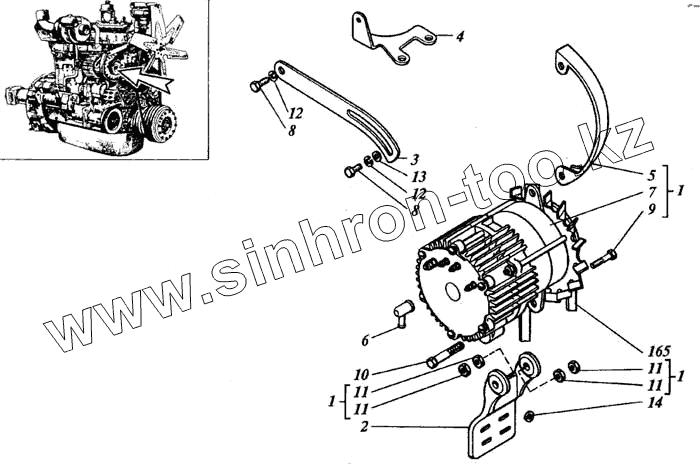 Каталог запасных частей к технике: РСМ Дон 1200Б. Установка генератора