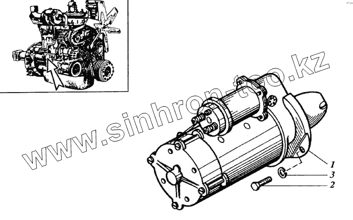 Каталог запасных частей к технике: РСМ Дон 1200Б. Установка стартера