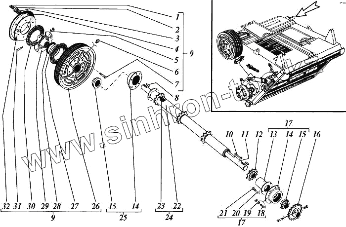 Каталог запасных частей к технике: РСМ Дон 1200Б. Вал верхний наклонной камеры