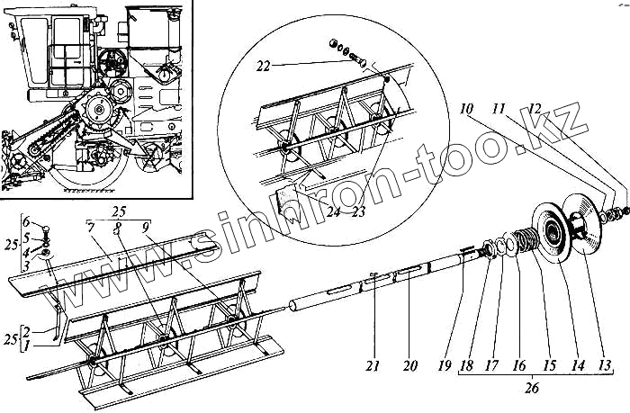 Схема передач платформы-подборщика (1500Б, 1200Б)