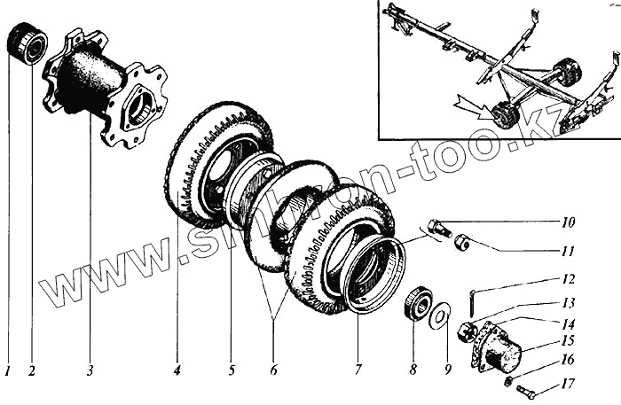Каталог запасных частей к технике: РСМ Дон 1500А. Блок колес тележки для транспортирования жатки