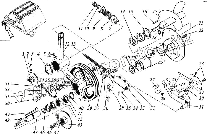 Каталог запасных частей к технике: РСМ Дон 1500А. Привод выгрузного шнека
