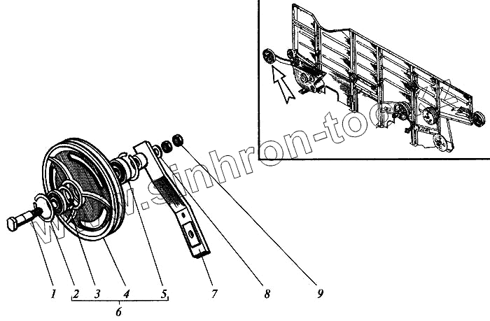Каталог запасных частей к технике: РСМ Дон 1500А. Ролик натяжной