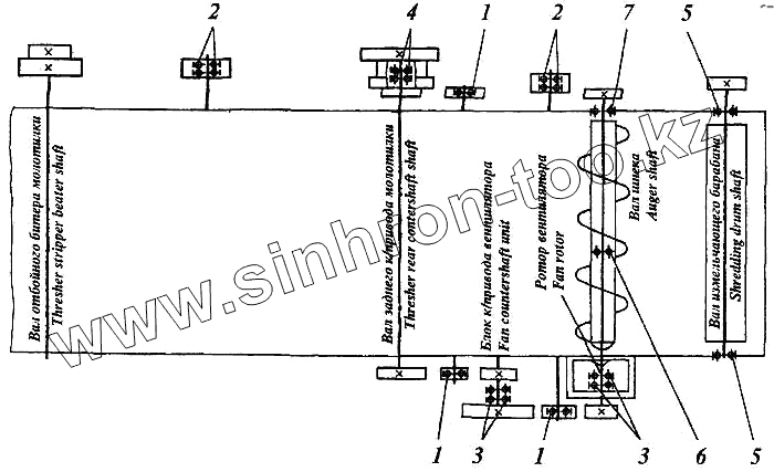 Каталог запасных частей к технике: РСМ Дон 1500А. Схема расположения подшипников измельчителя ПКН-1500