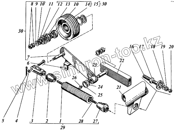 Каталог запасных частей к технике: РСМ Дон 1500А. Установка натяжника привода ГСТ