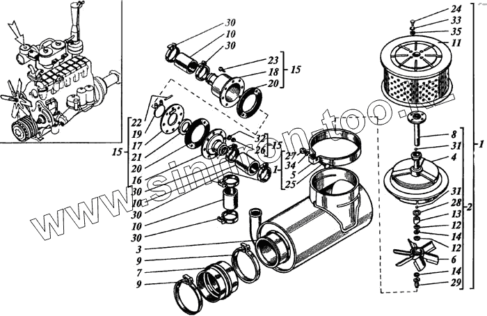 Каталог запасных частей к технике: РСМ Дон 1500А. Воздухозаборник и клапан эжектора