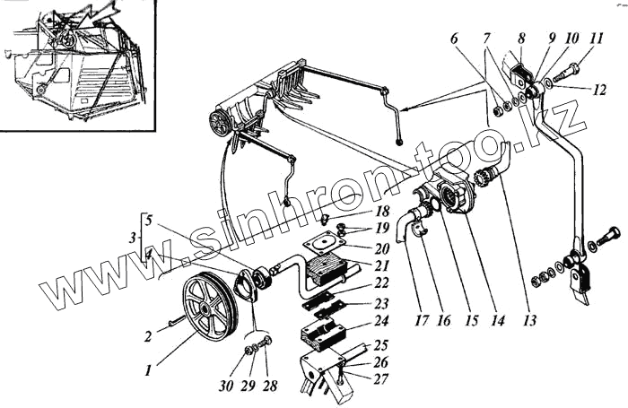 Схема ременных передач измельчителей ПКН-1500Б (1200Б) (правая сторона)