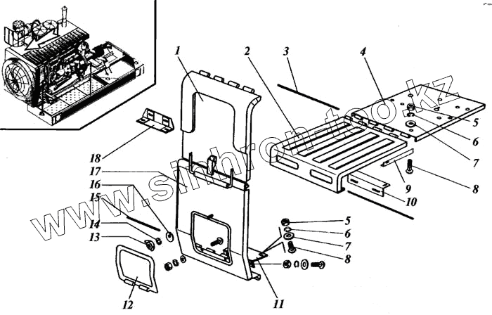 Каталог запасных частей к технике: РСМ Дон 1500Б. Капот радиатора