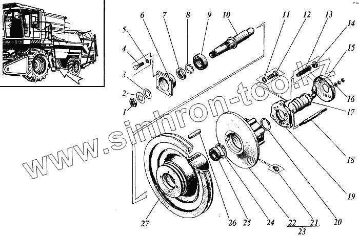 Каталог запасных частей к технике: РСМ Дон 1500Б. Контрпривод вентилятора