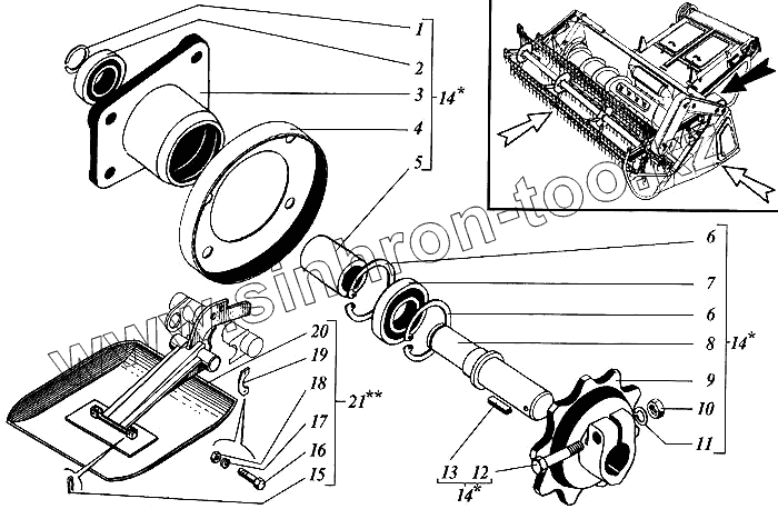 Каталог запасных частей к технике: РСМ Дон 1500Б. Контрпривод жатки, башмак жатки