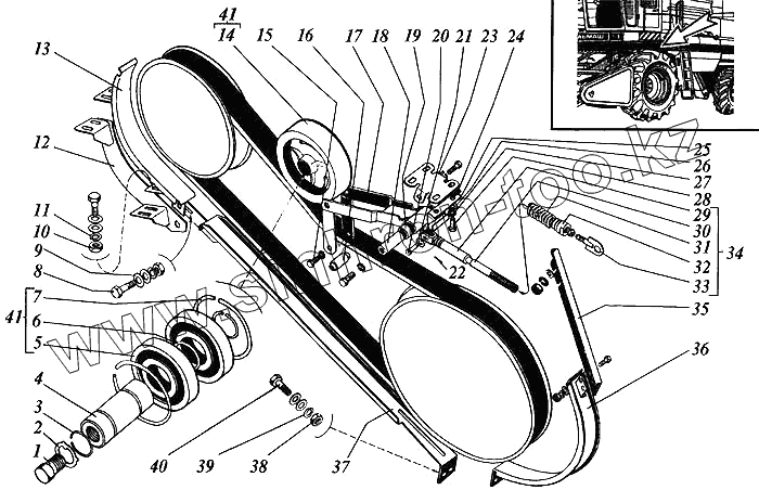 Каталог запасных частей к технике: РСМ Дон 1500Б. Механизм включения и выключения привода жатки