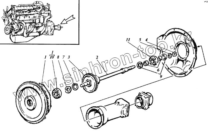 Каталог запасных частей к технике: РСМ Дон 1500Б. Привод отбора мощности с хвостовика коленчатого вала