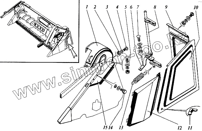 Каталог запасных частей к технике: РСМ Дон 1500Б. Щитки ограждения левой боковины жатки