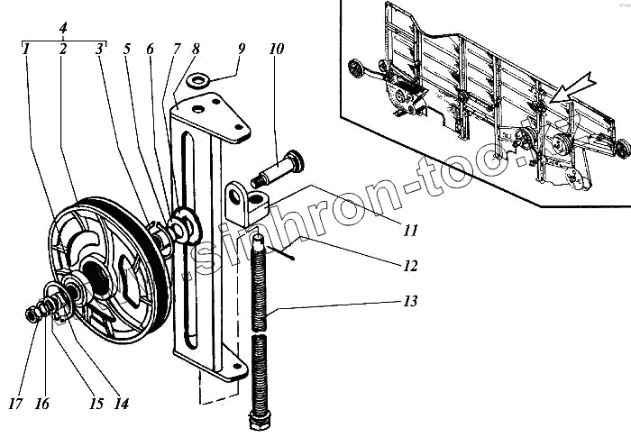 Каталог запасных частей к технике: РСМ Дон 1500Б. Шкив натяжной привода соломотряса